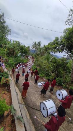 Sejak pagi hari, para siswa, guru, dan wali murid telah memadati halaman sekolah dengan membawa apem yang telah dipersiapkan sebelumnya. Apem-apem tersebut kemudian disusun dan diarak dalam kirab mengelilingi lingkungan sekitar sekolah. Dengan penuh semangat, para siswa berjalan beriringan sambil membawa hasil karya dan hidangan tradisional tersebut, menciptakan suasana yang semarak sekaligus penuh kekeluargaan.