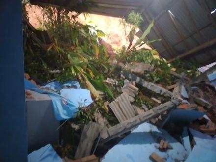 Material tanah yang runtuh tidak hanya menghantam bangunan utama yang bersifat permanen, tetapi juga menerjang bangunan dapur atau dalam sebutan lokal dikenal sebagai mah pawon yang berada di bagian belakang rumah. Bangunan dapur yang masih semi permanen tersebut mengalami kerusakan cukup parah akibat tertimbun tanah, batu, dan puing-puing tembok.