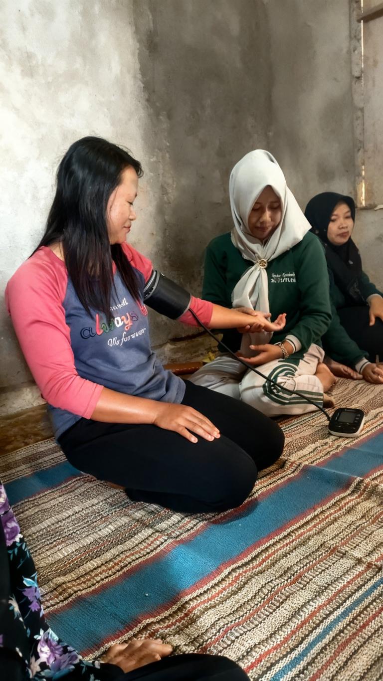 Kegiatan Posbindu ini dipandu oleh para kader kesehatan desa yang dengan sabar dan telaten melayani setiap peserta. Para kader tidak hanya membantu proses pemeriksaan, tetapi juga memberikan pendampingan serta penjelasan sederhana agar warga memahami kondisi kesehatannya masing-masing.